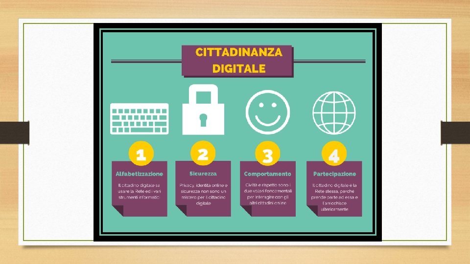 La cittadinanza Di cosa si digitale tratta? • Grazie allo sviluppo delle tecnologie e delle innovazioni digitali, gli Stati hanno potuto estendere sempre di più l’accesso dei cittadini ai servizi pubblici via web. Così se già come «cittadini del mondo fisico» abbiamo diritti e doveri, è emersa la necessità di averli anche in quanto «cittadini della Rete» . Da qui il concetto di cittadinanza digitale, che comprende tutte le possibilità che abbiamo per partecipare alla vita sociale e politica tramite il web, guidati e tutelati da un quadro normativo specifico. • Sai che i tuoi genitori possono sbrigare molte pratiche amministrative online? Si possono pagare le imposte online, scambiarsi comunicazioni di valore ufficiale con il comune utilizzando un’apposita casella di posta elettronica; in molte regioni, poi, è possibile pagare per via elettronica il bollo auto, ovvero la tassa regionale sulla proprietà dei veicoli, in quasi tutti i comuni italiani è possibile verificare via web i propri dati anagrafici e richiederne delle modifiche.