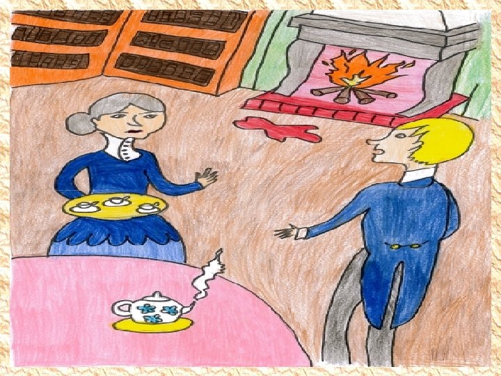 I signori Otis la seguirono nella biblioteca, dove era pronto il tè. Si tolsero i mantelli e si sedettero intorno al tavolo in silenzio. E, mentre la governante li serviva, incominciarono ad osservare con più attenzione la grande sala. La signora Otis notò subito una macchia rossa sul pavimento, accanto al caminetto. Si irritò maledettamente. «Non le sembra che laggiù sia stato versato qualcosa? » chiese alla governante con ironia. «E’ vero, signora, è sangue. » rispose la signora Umney. «A me non piacciono le macchie di sangue sul pavimento! Bisogna toglierle subito!» gridò la padrona. «E’ il sangue di lady Eleonore di Canterville, uccisa dal marito nel 1575. Nove anni dopo, il marito, sir Simon di Canterville sparì misteriosamente e il suo corpo non fu mai ritrovato» disse la governante, a voce bassa. Dopo una breve pausa, continuò: «La macchia di sangue è diventata motivo di visita di tanti turisti perché non è possibile cancellarla!» . «Sciocchezze!» esclamò Washinton «Col superdetergente Pinkerton sparirà in un attimo!» Detto fatto: si inginocchiò sul pavimento e, estratta dalla tasca una boccetta, con un bastoncino nero si mise a fregare la macchia. Come aveva assicurato, la macchia sparì. «Come vedete, Pinkerton non scherza» concluse Washinton, tra l’ammirazione di tutta la famiglia. Ma non aveva ancora finito di pronunciar la frase che un lampo attraversò la biblioteca. Il tuono che seguì li fece balzare in piedi. La vecchia signora Umney cadde a terra svenuta. Quando si fu ripresa, timidamente disse: «Signori, io ho visto con i miei occhi, cose terrificanti in questa casa e tante notti non ho dormito. »
