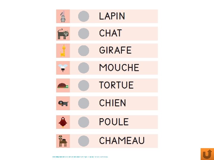 VENDREDI Réponses de jeudi Devinette: escargot DEVINETTE Je suis un animal à 2 pattes. J’ai des plumes. Je vis à la ferme dans la basse cour. Je ponds des œufs. Mon mâle est le coq et mon petit le poussin. Qui-suis-je ? Pierre et le loup Rébus: chapeau Phonologie: sapin REBUS Dis les deux mots illustrés pour obtenir le troisième mot. ? JEU PHONOLOGIQUE Cherche l’image ayant la même attaque l’image de référence