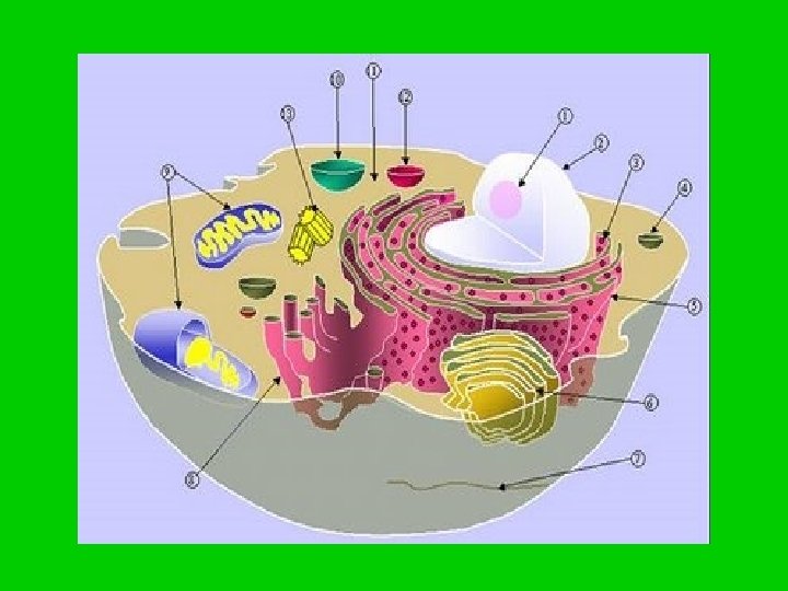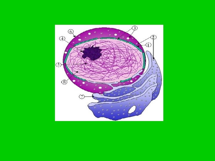 (1) Membrana nuclear (2) Ribosomas (3) Poros Nucleares (4) Nucleolo (5) Cromatina (6) Núcleo (7) Reticulo endoplásmico (8) Nucleoplasma • ¿En que se diferencia una célula animal de una vegetal? • ¿Dónde se localiza el material hereditario?