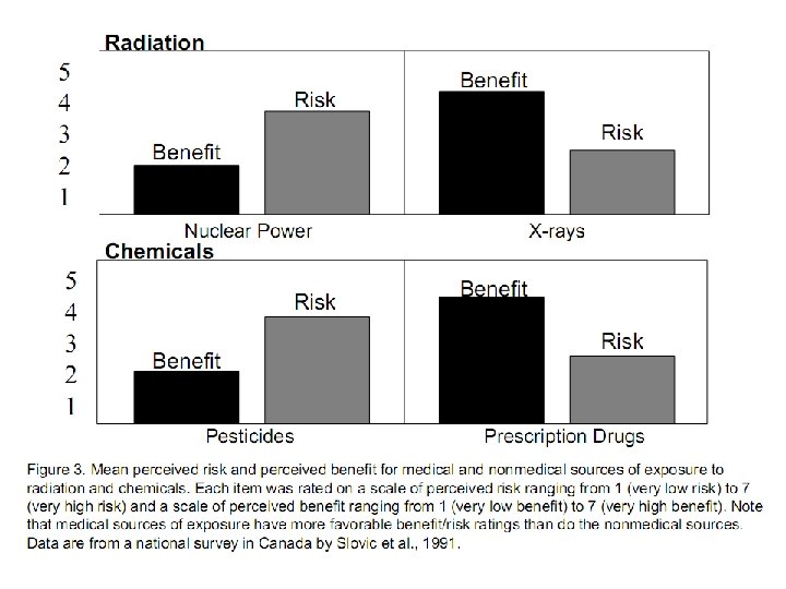 Vanno d’accordo, ma i giudizi hanno sempre una corr. neg. Pesticidi Benefici per l'uomo Organic Food Danni per l'uomo Esperti Pubblico r= -. 415** Benefici per l'uomo Danni per l'uomo Esperti Pubblico r = -. 661** Savadori, L. , Savio, S. , Nicotra, E. , Rumiati, R. , Finucane, M. , & Slovic, P. (2004). Expert and public perception of risk from biotechnology. Risk Analysis, 24(5), 1289 -1299.