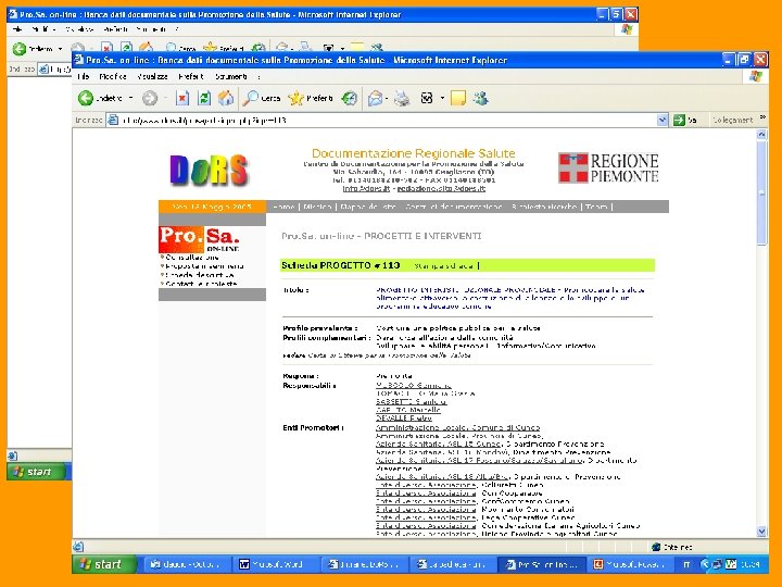 Catalogazione (bd Pro. Sa doc/prog) Documentazione Ricerche documentali Dossier Valorizzazione Disseminazione (seminari, convegni, sito, newsletter, pubblicazioni…) Sensibilizzazione (lab valutazione, lab alimentazione ed attività fisica…) Formazione Consulenza – Assistenza (progetti, programmi, politiche…)