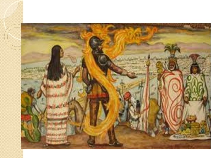 La llegada de Hernán Cortés � Los españoles llegaron en 1519 en la península de Yucatan donde tuvieron un encuentro con el imperio Maya los cuales le entregaron 20 esclavas en las que venia en ellas la Malitzin (Malinche) que se convirtió en la traductora y esposa de Hernan Cortez. Siguiendo su camino a México fundaron su primera ciudad en Veracruz. Tiempo después se encontraron con el señorío de Tlaxcala donde formaron una alianza tiempo después para acabar con el imperio azteca. También se encontraron con el señorío de Cholula en Puebla donde hubo una matanza a sacerdotes y nobles al mando de Pedro de Alvarado y por fin llegando a la ciudad de Mexico-Tenochtilan. El emperador Azteca Moctezuma II los recibe el 8 de noviembre de 1519 con gran temor a este por que creían que se trataba de Quetzalcoatl, que llegaba para reclamar su territorio ya que tiempos anteriores el territorio le pertenecía a la cultura Tolteca y que dicho miedo provocó