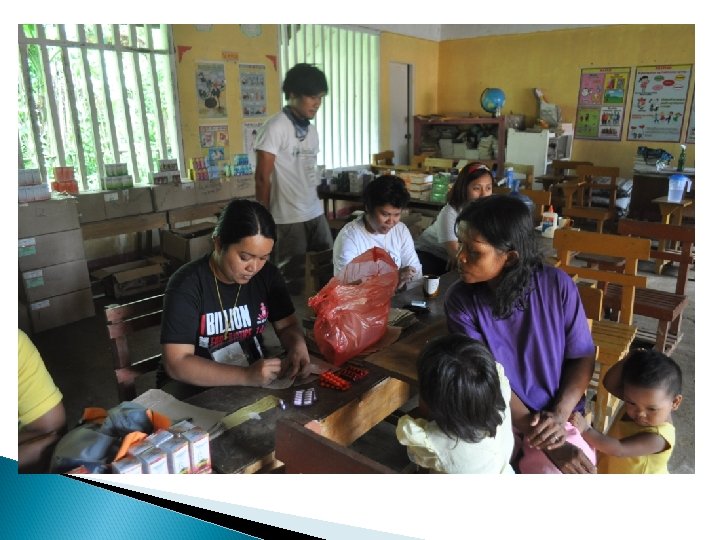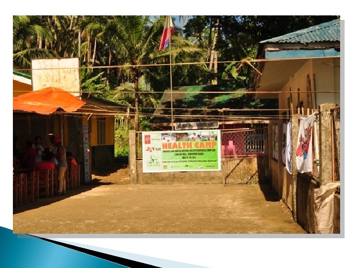 Effetti, risultati e impatto Risultati delle Buone Pratiche - Raggiungimento delle GIDA (Geografical Isolated Depressed Area) colpite dal tifone e un accurato check up medico e dentistico delle popolazioni e elaborazione del trauma dovuto al Tifone. - Educazione alla salute della popolazione e miglioramento delle condizioni igienico sanitarie dei villaggi coinvolti - Avvio dei progetti di sussistenza per migliorare la situazione economica degli abitanti dei villaggi (spaccio per vendita prodotti locali, costruzione di un forno per la produzione e vendita pane) - Costruzione del Day Care Centre a Paranas per la comunità che viene usato come centro di aggregazione, centro per bambini, giovani e donne e «shelter» per la popolazione nel caso di altre calamità naturali.