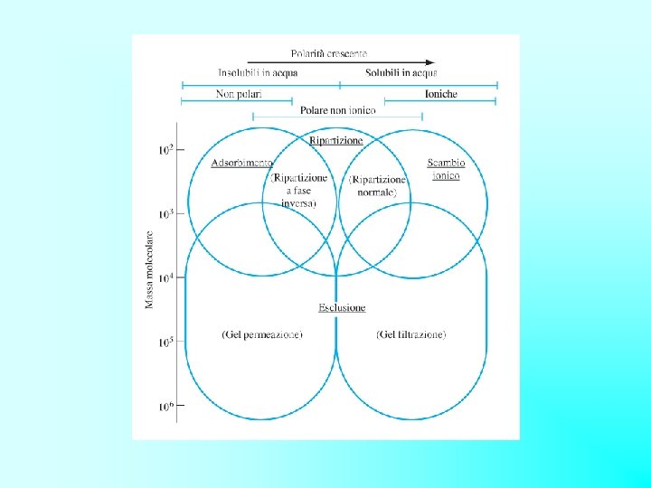 Meccanismi della separazione In base ai tipi di interazione prima descritti possiamo suddividere i meccanismi di separazione impiegati in cromatografia in: § adsorbimento § ripartizione § scambio ionico § esclusione § affinità