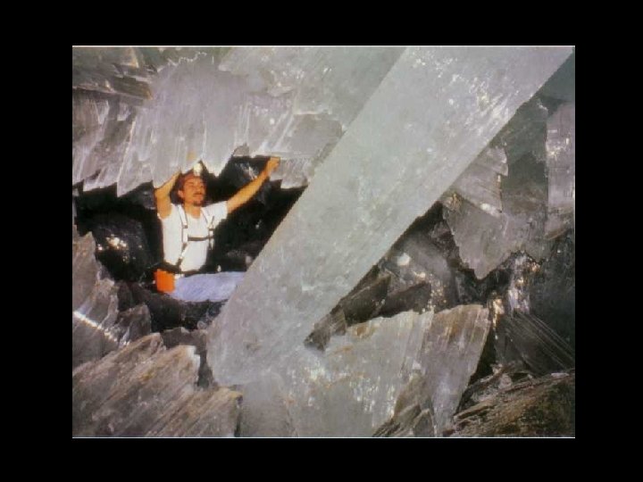 Al entrar en la cavidad sentimos como si la temperatura hubiera subido al doble. Sin embargo, de momento se nos olvidó el calor porque frente a nosotros teníamos un salón repleto de cristales de gran tamaño. Sin lugar a dudas eran, con mucho, los cristales más grandes que habíamos visto en nuestra vida. Salían por todas partes y en todas direcciones, uniendo el piso con el techo. Después de haber visitado más de dos mil cuevas por todo México, las sorpresas continuaban, y en que forma! Claude sólo se tarevió a decir: "Esto es una locura de la naturaleza. Aquí se puso a disvariar y a salirse de todo lo que es para ella 'normal' en cuanto a cuevas". …Y eso que Claude, a sus 60 anos de edad, conoce más de diez mil cuevas por todo el planeta.
