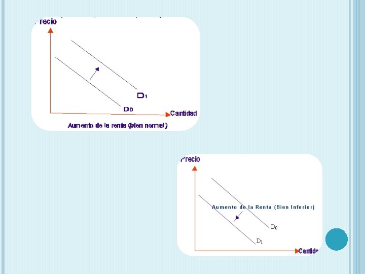 LOS DETERMINANTES DE LA DEMANDA LAS RENTAS. - Es evidente que la renta influye en la cantidad que compran los individuos de la mayoría de los bienes y servicios a un precio dado cualquiera. En el caso de la mayoría de los bienes, la cantidad demandada a un precio cualquiera aumenta con la renta. Los bienes que tienen esta propiedad se denominan bienes normales. Los llamados bienes inferiores (como la carne picada que tiene mucha grasa) constituye la excepción a este patrón general.