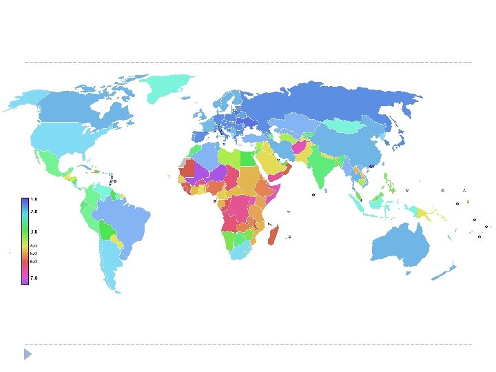 H. Osserva la carta tematica della slide precedente. Quali sono i Paesi in cui si registra la più bassa speranza di vita? In quale continente si trovano? A quanti anni corrisponde la loro speranza di vita media? I. Qual è l’età media che si può sperare di raggiungere in Europa, Stati Uniti, Canada, Australia?