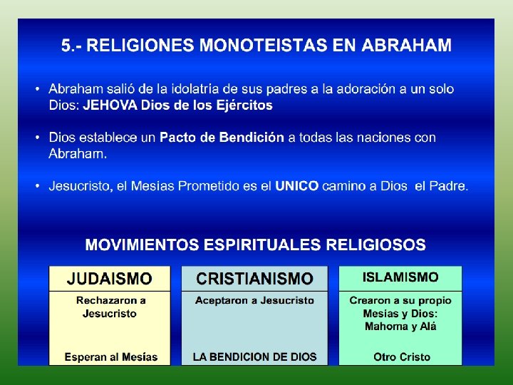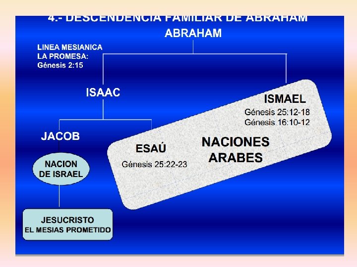 Es así como a través de Abram, Dio constituye una gran nación con principios santos para que los comparta con los descendientes de Jafet y Cam, pero cuando el Hijo de Dios en cumplimiento de la promesa dada en (Gén. 3: 15), Juan dice que ni los mismos descendientes de Abrahán lo recibieron (lea Juan 1: 11).