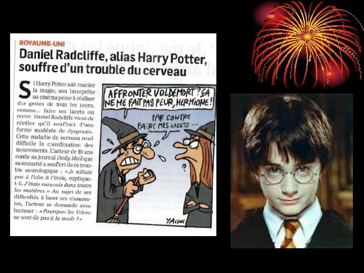 Quelles aides les dyspraxiques peuvent avoir ? • Les enfants dyspraxiques peuvent être suivis par certains professionnels : • L’orthoptiste : « qui rééduque les yeux » • L’ergothérapeute : qui aide à trouver les compensations nécessaires à nos difficultés. • La psychomotricienne : qui nous aide à mieux comprendre et utiliser notre corps. • La psychologue qui nous aide à accepter et à mieux comprendre nos difficultés.