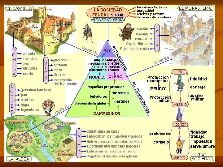 La vida cotidiana en la Alta Edad Media Cerca de éstos, Las viviendas de los nobles eran los castillos campesinos vivían en aldeas de pequeñas casas
