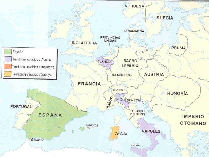 ESPAÑA EN EL SIGLO XVIII Carlos II murió sin descendencia. España sufrió la guerra de Sucesión y perdió sus territorios de Europa. Después, hubo un período de paz y surgió la Ilustración. Felipe V