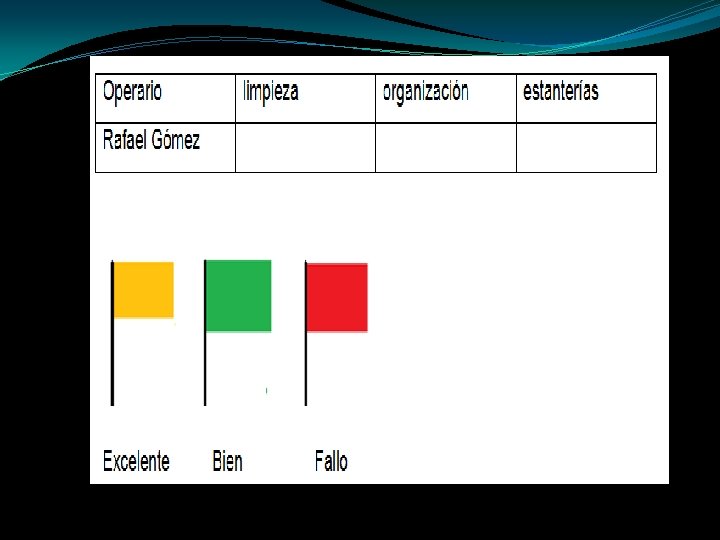 �Paso 2: búsqueda y selección de un lugar adecuado en compañía con la encargada. �Paso 3: se solicito el permio a la gerencia para trasladar la maquina a la nueva ubicación y los recursos económicos para complementar la mejora. �Paso 4 : compras para la adecuación del espacio; dos estanterías móviles y un ventilador. �Paso 5: ubicación de los equipos en el nuevo espacio �Paso 6: se identifico los artículos y herramientas exclusivamente necesarias para esta labor, se conto con la colaboración al operario, se le dio una caneca para que bote los residuos de las etiquetas. �Paso 7: plan de limpieza �Paso 8: hoja de auditoría de las 5´s y se les explica el método de las banderitas.