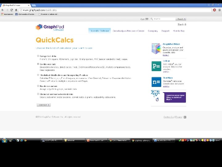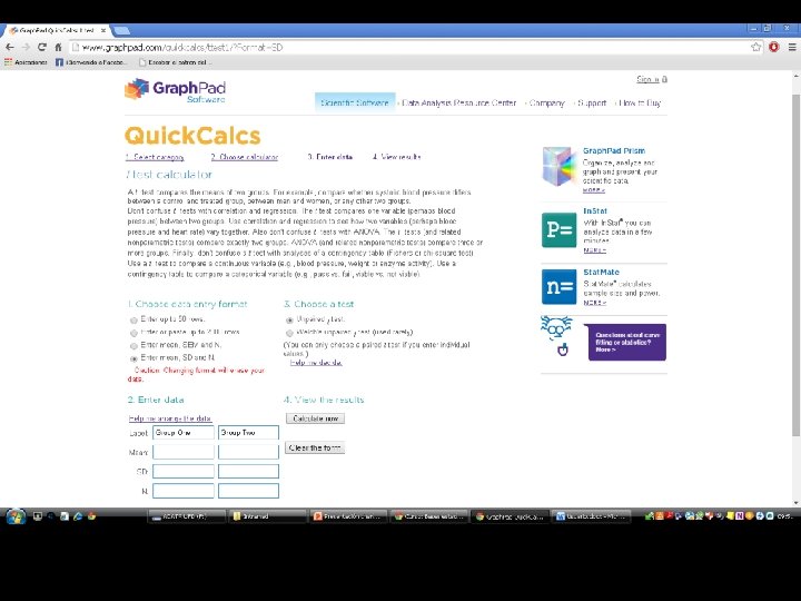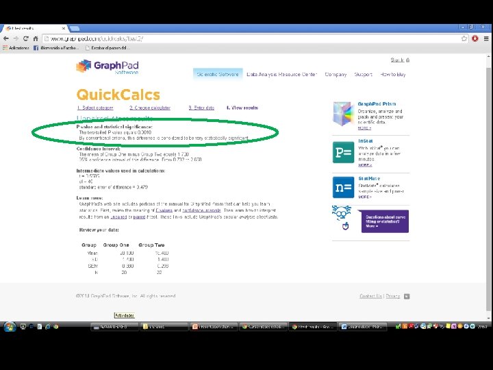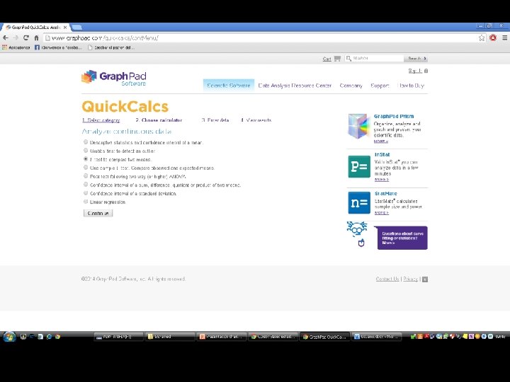 Test estadísticos para comparar grupos: 1 grupo Cuantitativa (datos antes y después) 2 grupos + de 2 grupos Test T de datos apareados Test T de dos grupos ANAVA y Tests de comparaciones múltiples Variable Prueba de independencia de Chi-cuadrado Prueba exacta de Fisher Cualitativa Prueba de Mc. Nemar Prueba Q de Cochran Prueba de Hipótesis: H 0 vs H 1
