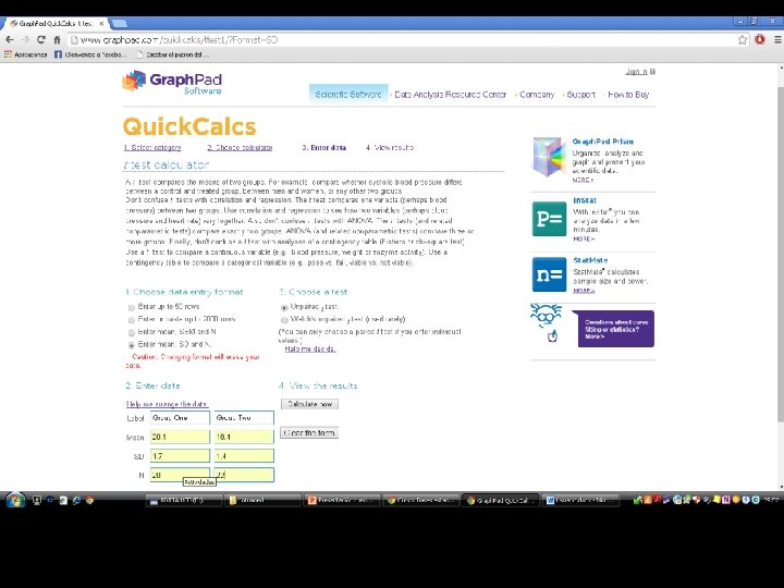 Bioestadística inferencial Medicamento tradicional Nuevo medicamento n= 20 X = 20. 1 DS= 1, 7 n= 22 X = 18, 4 DS= 1, 4 H 0: µ 1 - µ 2=0 H 1: µ 1 - µ 2 < > 0