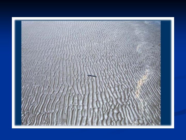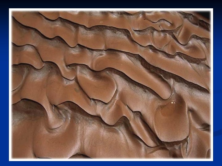 ONDULITAS O RIZADURAS ( RIPPLE MARK) Las ondulitas pueden ser de origen acuático o eólico; es decir se pueden formar sobre el fondo de cuerpos de agua o por la acción del viento en la superficie de la tierra son simétricas y consisten en anchos senos que son convexos hacia abajo y en crestas agudas que apuntan hacia arriba. sirven para determinar si un estrato esta en posición normal o invertido, la cresta aguda apunta hacia los estratos más jóvenes, mientras que los senos redondeados a los más antiguos