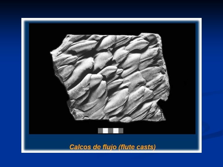Flute Cast (Marcas Tubulares): Se originan por erosión sobre fondos arcillosos, iniciándose probablemente en pequeñas irregularidades del fondo, y por una situación de flujo particular (remolinos) en la irregularidad.