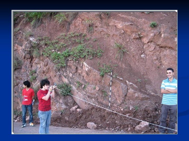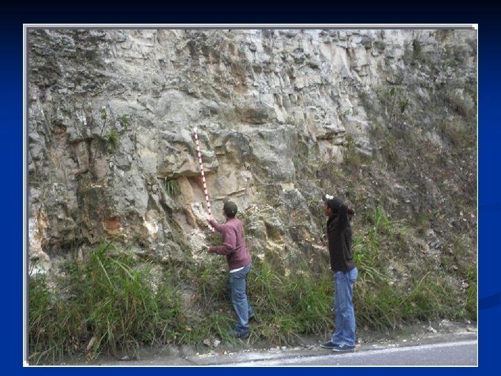 • Principios de La Estratigrafía 1. - La ley de la superposición: Si un estrato (o capa) yace sobre otro, el estrato de arriba es (más joven) que el de abajo. 2. - La ley de Identidad Paleontológica: Los estratos que contienen fósiles de las mismas especies de animales y plantas, se formaron en el mismo periodo. Esta ley permite establecer relaciones temporales entre estratos dispersos por distintas localidades. • 3. Principio de Continuidad Litológica • 4. Uniformismo o Actualismo