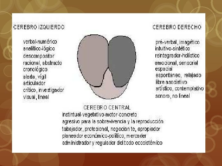 Cerebro triádico versus dos hemisferios Enfoque holístico Idea de tríada de tres bloques como el HD + HI + HC Tres tipos de funcionalidad bien diferenciada Potencial racional + potencial emocional + potencial operacional