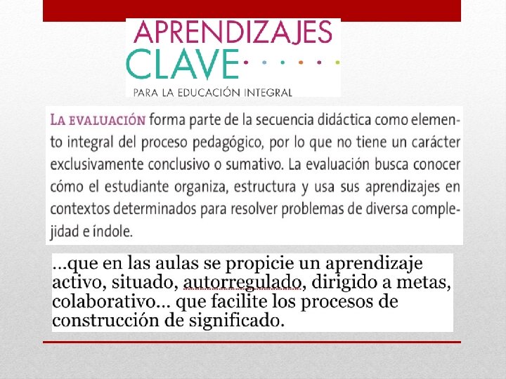 Actores clave en la evaluación formativa 1. El docente 2. Los compañeros de clase 3. El propio estudiante ‣ Involucrar a los estudiantes y crear responsabilidad y control sobre su propio aprendizaje: autoevaluación - co evaluación - metacognición