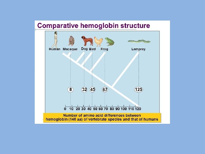 Construye un árbol filogenético de estas seis especies de vertebrados a partir de las diferencias en los aminoácidos que forman su hemoglobina.