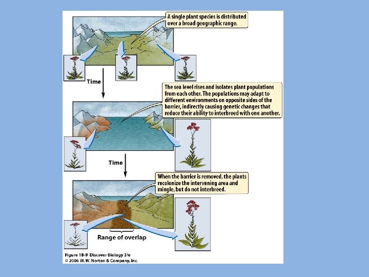 ¿CÓMO SURGEN LAS ESPECIES EN LA NATURALEZA? Barrera geográfica El aislamiento geográfico de dos poblaciones conduce a la aparición de nuevas especies.