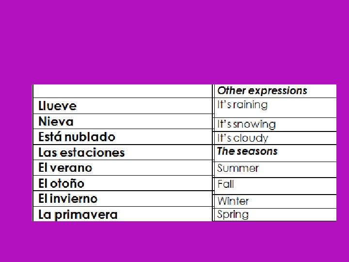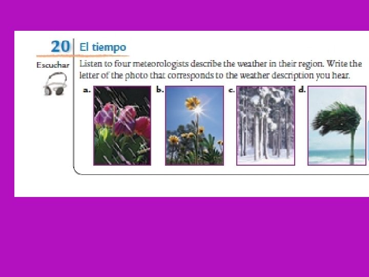 Pizarritas Pictionary Write the weather word or expression that you hear. Then, draw a picture to show what it means