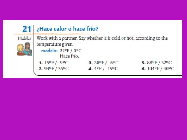 Partner Card game In groups of 3 (One student will be the scorekeeper) As you see the expressions on the screen, the first one to slap the card as they say the Spanish translation will take the card.