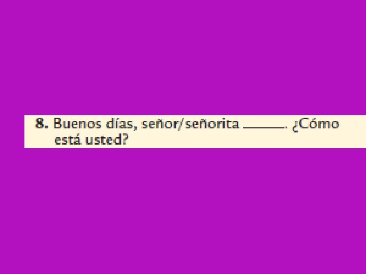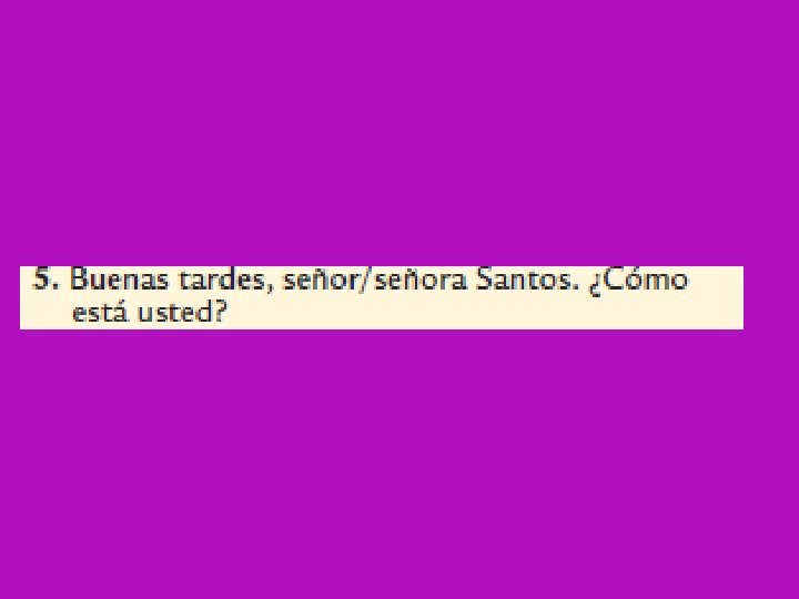 Song: Teacher Sings Students sing Buenos Días ¿Cómo estás? ¿Cómo está usted? Muy bien gracias De nada