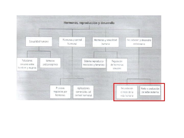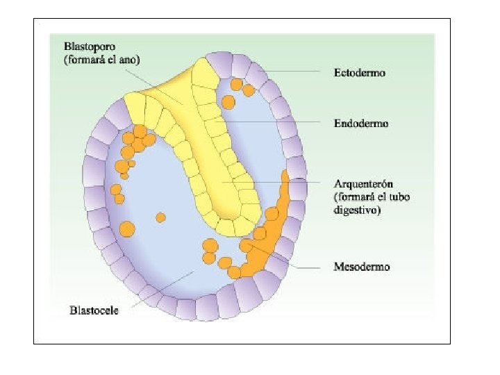 Fecundación en el oviducto. El cigoto experimenta una serie de divisiones mitóticas (2 -4 -8 células o blastomeros) (morula), en su interior se genera una cavidad llena de líquido, el blastocele, ahora se llama blastocisto. En el blastocisto las células internas darán origen al embrión y las periféricas serán el trofoblasto, el que toma contacto con los tejidos maternos y libera una hormona llamada gonadotrofina coriónica que estimula al cuerpo lúteo para que continúe la producción de progesterona y estrógenos y se evite la menstruación. El embrión penetra en la mucosa y se anida o implanta y comienza a formarse la placenta.