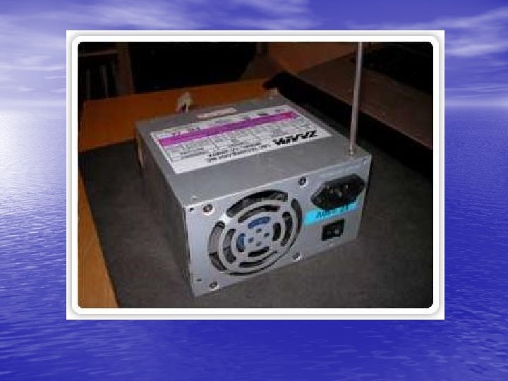 Definición • La fuente de alimentación es la encargada de alimentar al ordenador. Se trata de un transformador en el que entran 125 v 0 220 v en alterna y salen hacia el ordenador transformados en 12 v, 5 v y 3. 3 v en continua.