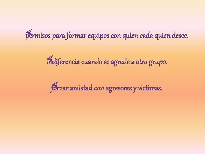 6. -Oriente los derechos y responsabilidades 7. -Favorezca la expresión, creando un ambiente escolar 8. -Enseñe habilidades para su sana y respetuosa expresión social