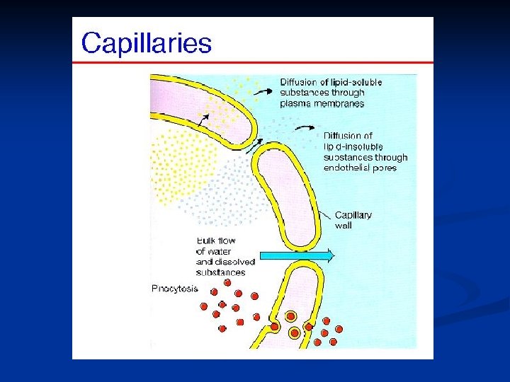 Le molecole liposolubili si muovono velocemente fra sangue e tessuti perché passano attraverso tutto l’endotelio (O 2 e CO 2). O 2 è così diffusibile attraverso l’endotelio che già a livello arteriolare esso passa nei tessuti e a livello capillare la saturazione di O 2 nel sangue è già ridotta all’ 80%.