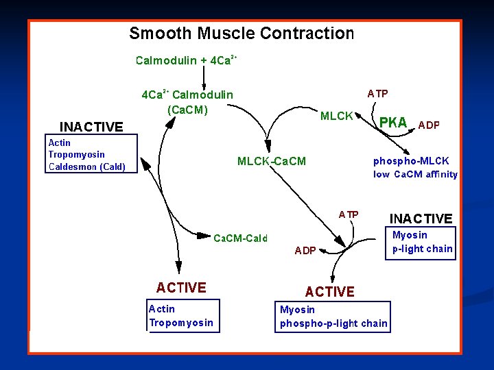 Benché nel muscolo liscio manchi la troponina, la regolazione della contrazione è ancora a carico degli ioni Ca 2+. Esiste una proteina regolatoria detta caldesmosoma che lega il complesso Ca-CAM regolando l’attacco della tropomiosina ai siti di legame per la miosina presenti sui filamenti sottili. L’aumento del calcio citosolico determina un aumento dei livelli del complesso Ca-CAM che, a sua volta, lega la proteina caldesmosoma rimuovendo il blocco tropomiosinico sui siti di attacco dei filamenti sottili. In sostanza la proteina caldesmosoma sostituisce la troponina come proteina regolatoria