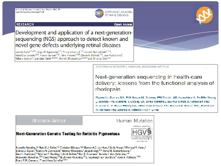 Malattie retiniche ereditarie L’eterogeneità dei disordini retinici ereditari si riflette nell’elevato numero di geni mutati correlati Più di 150 geni sono stati identificati come responsabili (http: //sph. uth. tmc. edu/Retnet/home. htm) Ad oggi non è stato ancora possibile identificare mutazioni geniche responsabili della malattia in un significativo numero di pazienti Una correlazione genotipo/feotipo non è sempre fattibile in quanto fattori ambientali possono influenzare le manifestazioni cliniche.