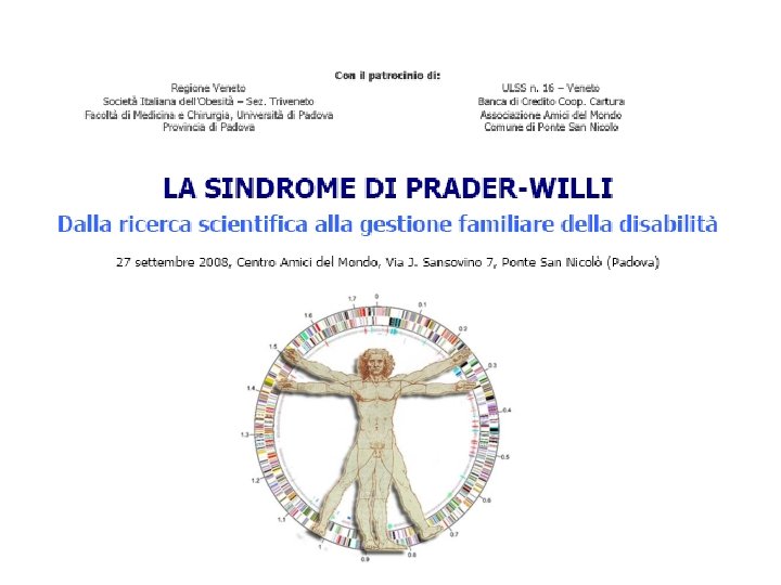 La genetica della Sindrome di Prader-Willi Dott. ssa Milan Gabriella Laboratorio Endocrino Metabolico DIPARTIMENTO DI SCIENZE MEDICHE E CHIRURGICHE Università degli Studi di Padova Clinica Medica 3