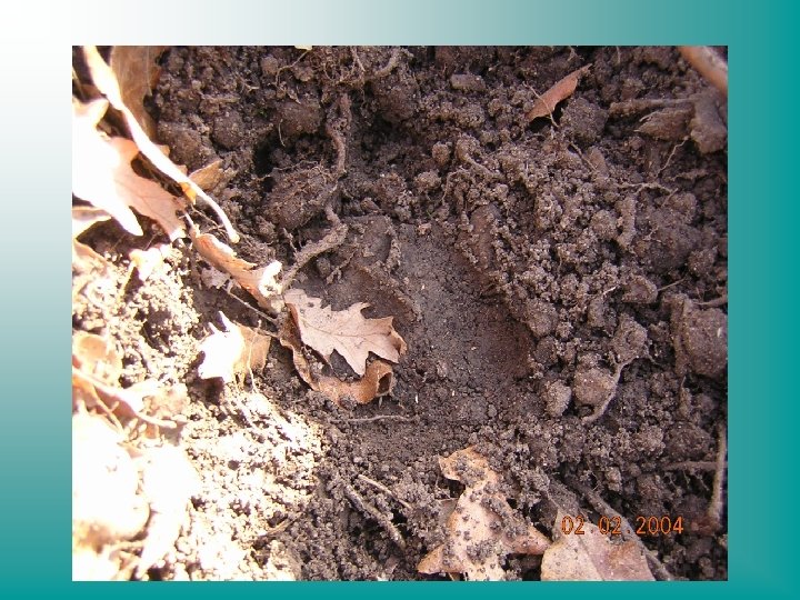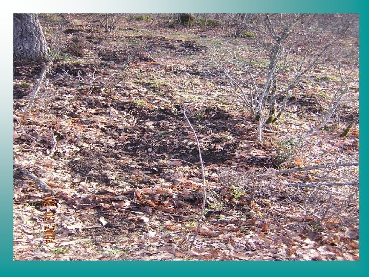 Grufolate (rooting) Provocate dall’attività alimentare del suide quando ricerca cibi ipogei Si presentano come vere e proprie arature del terreno, di profondità fino a 40 cm ed estensione anche di alcune decine di metri quadri Anche i soggetti appartenenti alle classi giovanili grufolano