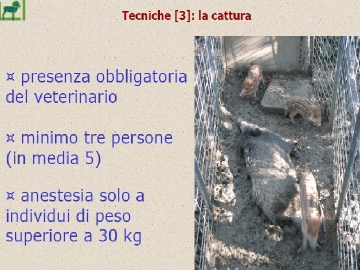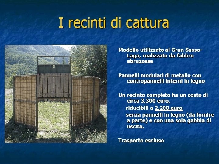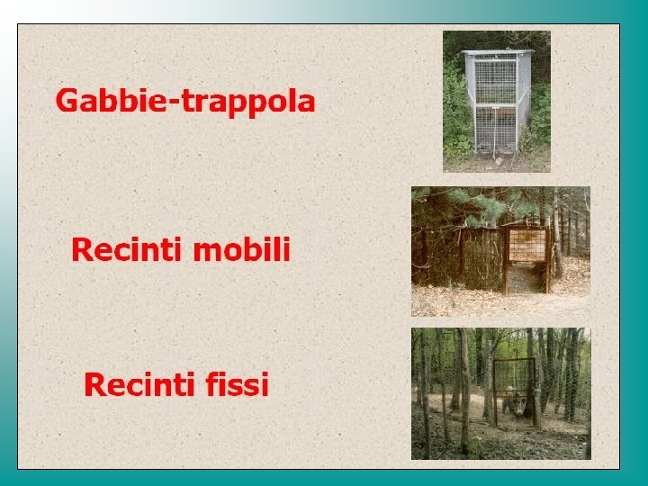 TECNICHE DI CATTURA - GABBIE TRAPPOLA - RECINTI MOBILI - RECINTI FISSI Materiali e Prove di funzionamento
