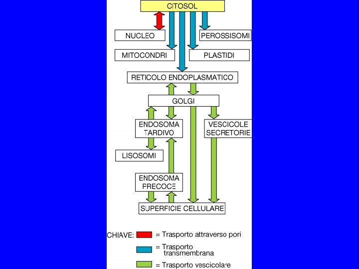 TRA ALCUNI COMPARTIMENTI VI E’ INTERCONNESSIONE DINAMICA 1. CITOSOL MATRICE NUCLEARE MITOCONDRI (CLOROPLASTI) PEROSSISOMI 2. RER/INVOLUCRO NUCLEARE GOLGI LISOSOMI MEMBRANA PLASMATICA