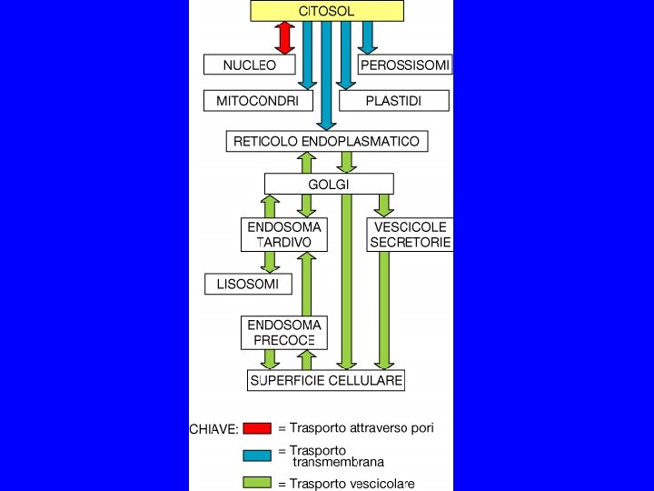 TRA ALCUNI COMPARTIMENTI VI E’ INTERCONNESSIONE DINAMICA 1. CITOSOL MATRICE NUCLEARE MITOCONDRI (CLOROPLASTI) PEROSSISOMI 2. RER/INVOLUCRO NUCLEARE GOLGI LISOSOMI MEMBRANA PLASMATICA