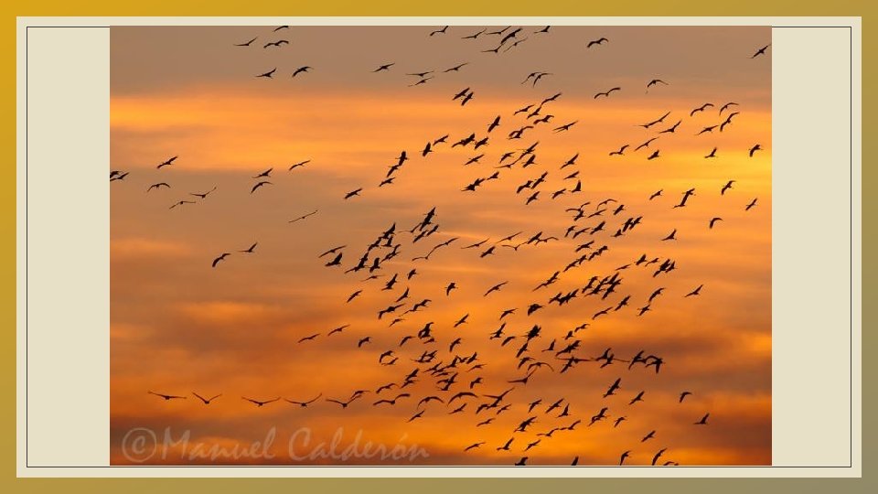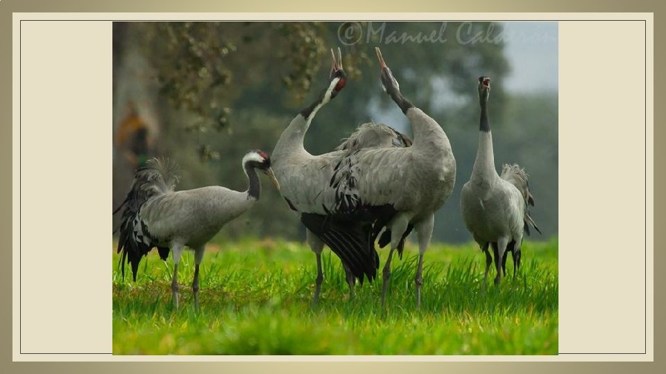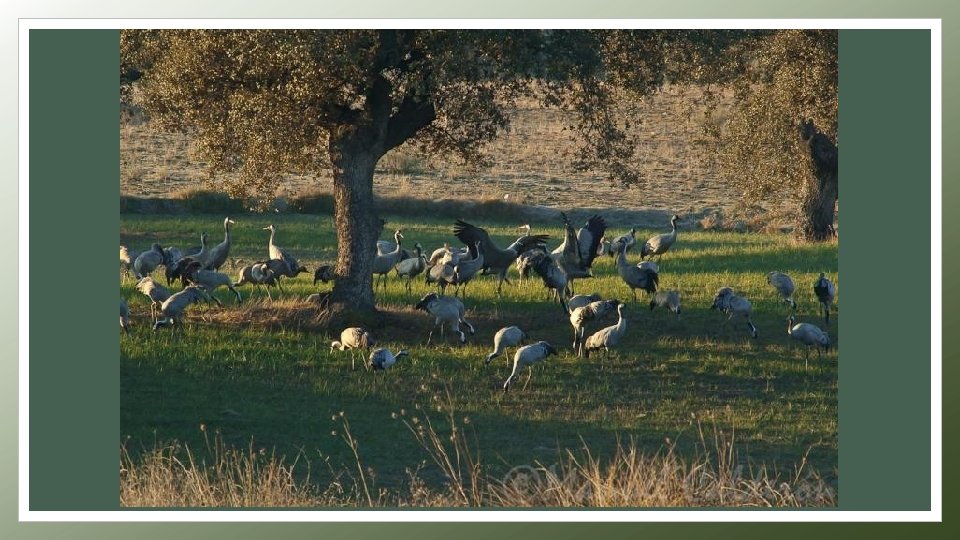 LA RUTA MIGRATORIA OCCIDENTAL HORNBORGA (SUECIA) RÜGEN (ALEMANIA) LAC DER CHANTECOQ (FRANCIA) LANDAS DE GASCOGNE (FRANCIA) GALLOCANTA (ARAGÓN) EXTREMADURA Para llegar a España utilizan la ruta migratoria occidental que les lleva a cruzar Suecia, Dinamarca, Alemania y Francia durante los meses de octubre y noviembre.