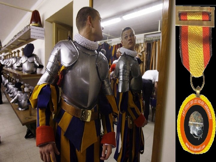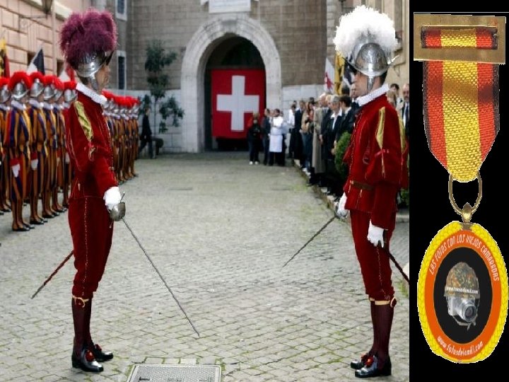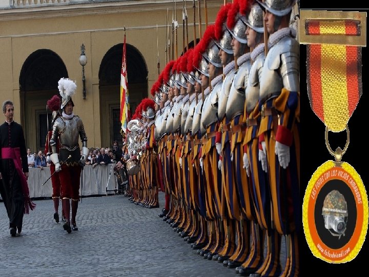LA GUARDIA SUIZA La Guardia Suiza es un cuerpo militar encargado de la seguridad de la Ciudad del Vaticano. La Guardia Suiza fue fundada por el Papa Julio II en 1505, ante la necesidad de que existiera un cuerpo militar siempre disponible para proteger al Papa. Su historia ejemplar de lealtad guarda el honor y el orden en la Ciudad del Vaticano. Fue creada el 21 de enero de 1506, tres años después de que el Papa Julio II ocupara la silla de San Pedro y pidiera, a los nobles suizos, soldados para su protección, formando una compañía de 150 hombres. En ese momento, la elección lógica fueron los mercenarios suizos, debido a la reputación que se habían labrado en las Guerras de Borgoña. La fecha oficial de fundación es el 21 de enero de 1506. Desde entonces, la Guardia Suiza ha protegido no sólo a Sumos Pontífices. Durante el reinado de Luis XIV se encargó de la seguridad del Palacio de Versalles, en Francia. Diversos hechos de armas han inmortalizado la bravura de estos soldados, pero el más memorable ocurrió en 1527 cuando se enfrentaron a un millar de soldados alemanes y españoles durante el saqueo de Roma por parte de las tropas del emperador Carlos V. Lucharon ante la Basílica de San Pedro y siguieron combatiendo mientras retrocedían hasta los escalones del altar mayor. Sobrevivieron sólo 42 de los 150 guardias suizos; estos 42 soldados formaron un círculo alrededor del Papa Clemente VII y lograron que escapara por un callejón que conduce al Castillo de Sant'Angelo. Rememorando este hecho, cada 6 de mayo, los nuevos alabarderos juran sus cargos ante el Papa y los ascendidos toman posesión.