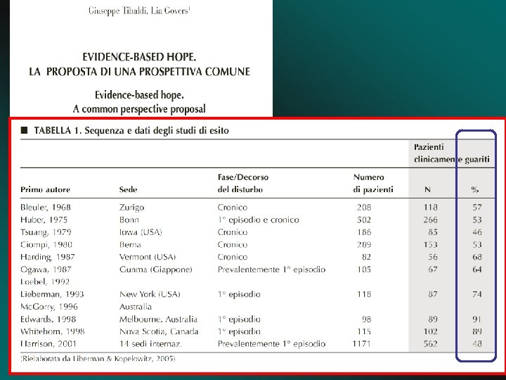 LA GUARIGIONE COME SPERANZA SCIENTIFICAMENTE RAGIONEVOLE Lia GOVERS, Giuseppe TIBALDI (Torino)