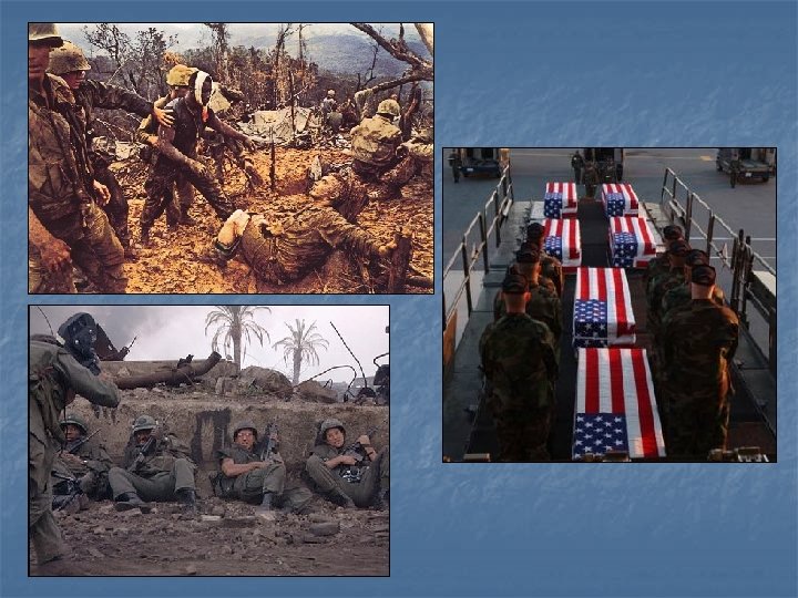 EFECTOS PARA VIETNAM n Víctimas: n n Norte: 3. 500. 000 muertos y desaparecidos, 600. 000 heridos. Sur: 230. 000 muertos, 1. 170. 000 heridos n n n 70% de la infraestructura del país fue destruida. La selva o jungla fue destrozada Hubo un éxodo masivo desde los campos más inseguros hacia las ciudades. Campo y cultivos profundamente dañados Efectos del agente naranja: abortos, deformaciones en los niños en gestación, esterilidad, etc.