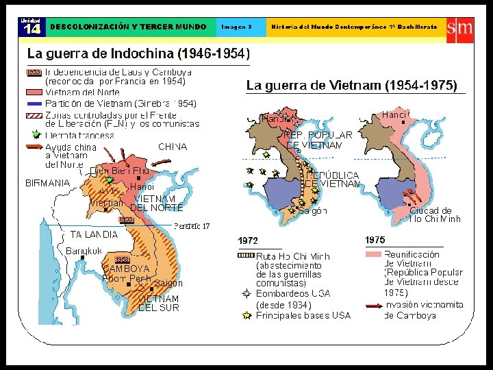 La guerra de Vietnam 1946 1954 França Guerra de descolonització Moviment independentista Viet-minh (Ho Chi Minh) Derrota francesa Dien-Bien-Phu Acords de Ginebra (1954) Divisió del Vietnam Nord comunista (Hanoi) Sud Capitalista (Saigon)