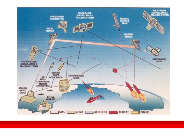 La Guerra de las Galaxias. REAGAN Y LA S. D. I. Esquema simplificado sobre el proyecto de Iniciativa de Defensa Estratégica (Guerra de las Galaxias). • Conforme aumenta la tensión se acelera la carrera de armamentos. • La USSS anuncia un incremento. • Pero Ronald Reagan pone en marcha la Iniciativa de Defensa Estratégica (I. D. E. ). • En esencia, EEUU estaría protegido por un escudo de antimisiles frente a los ICBM soviéticos, en satélites artificiales habría detectores que enviarían la señal a los antimisiles en tierra. • Financiación de 26. 000$ en 5 años.