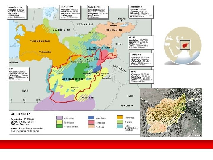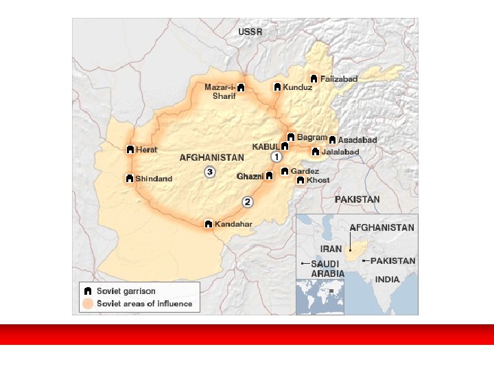Afganistán antes de la invasión. LA DEPENDENCIA DE LA URSS. • Estado-tapón artificial entre el Imperio Británico y el Imperio Ruso. • No tiene unidad geográfica ni étnica. • Elevada altitud que imposibilita la agricul. • 15 millones de habitantes en 1979. • Reconocida su independencia por Rusia en 1919, siempre se mantuvo muy unido a la URSS. • Vínculos y dependencia económica. Afganistán y sus vecinos en la actualidad.