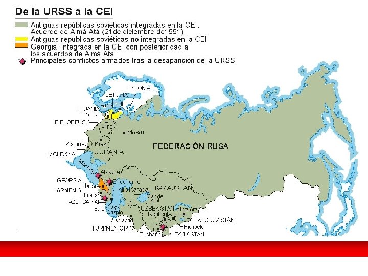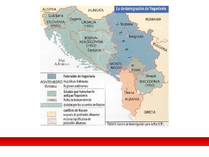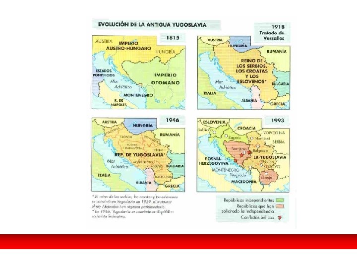 El fin de la Guerra Fría. EL PANORAMA MUNDIAL. • Primer conflicto de la posguerra fría: la I Guerra del Golfo. EEUU es la única superpotencia. • En 1991 es el principio del fin de Yugoslavia como estado, una cadena de sangrientos conflictos sume a los Balcanes en la barbarie. • Fragmentación de la URSS: El 25 -XII 1991: Gorbachov dimite como presidente de un país que no existe. • Nacen 15 repúblicas independientes. Discurso de dimisión de Gorbachov el día 25 de diciembre de 1991. La URSS dejaba de existir y en su lugar aparecían quince repúblicas.