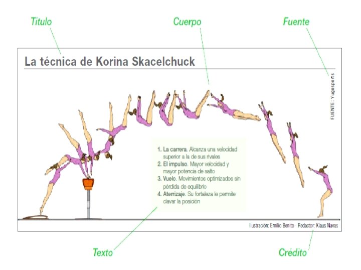 ü Fuente: Indica de dónde se ha obtenido la información que se presenta en la infografía. ü Crédito: Señala el nombre del autor o autores de la infografía, tanto del diseño como de la investigación.