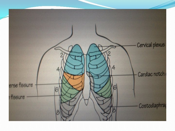 La Jaula Toraxica �Es una estructura osteomuscular, compuesta por las costillas, esternón, las escapulas, músculos intercostales, diafragma. �El diafragma, divide el tórax del abdomen. � El diafragma se inserta en 5 to espacio intercostal (limite anterior). �En la línea axilar media 7 - 8 vo espacio intercostal. �En la línea paravertebral en 12 do espacio intercostal.